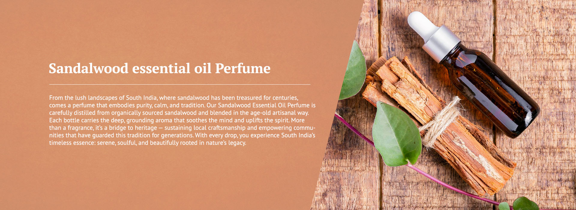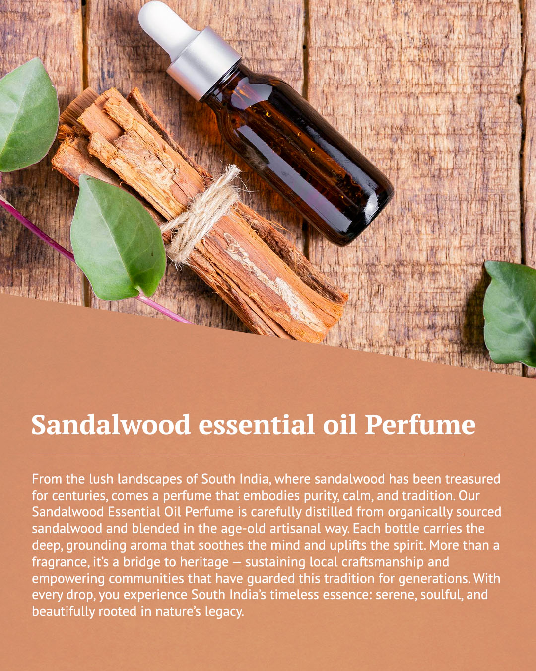 Step into the world of luxury and serenity with Elements Sandalwood Attar, our signature product made from 100% organic South Indian sandalwood infused with pure sandalwood essential oil. This handcrafted attar is a symphony of earthy, woody notes that soothes the mind, grounds the spirit, and leaves a lasting impression — an aroma that defines elegance, purity, and inner calm.