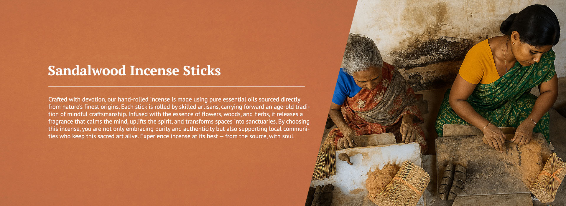 Sandalwood Hand-Rolled Organic Incense Sticks