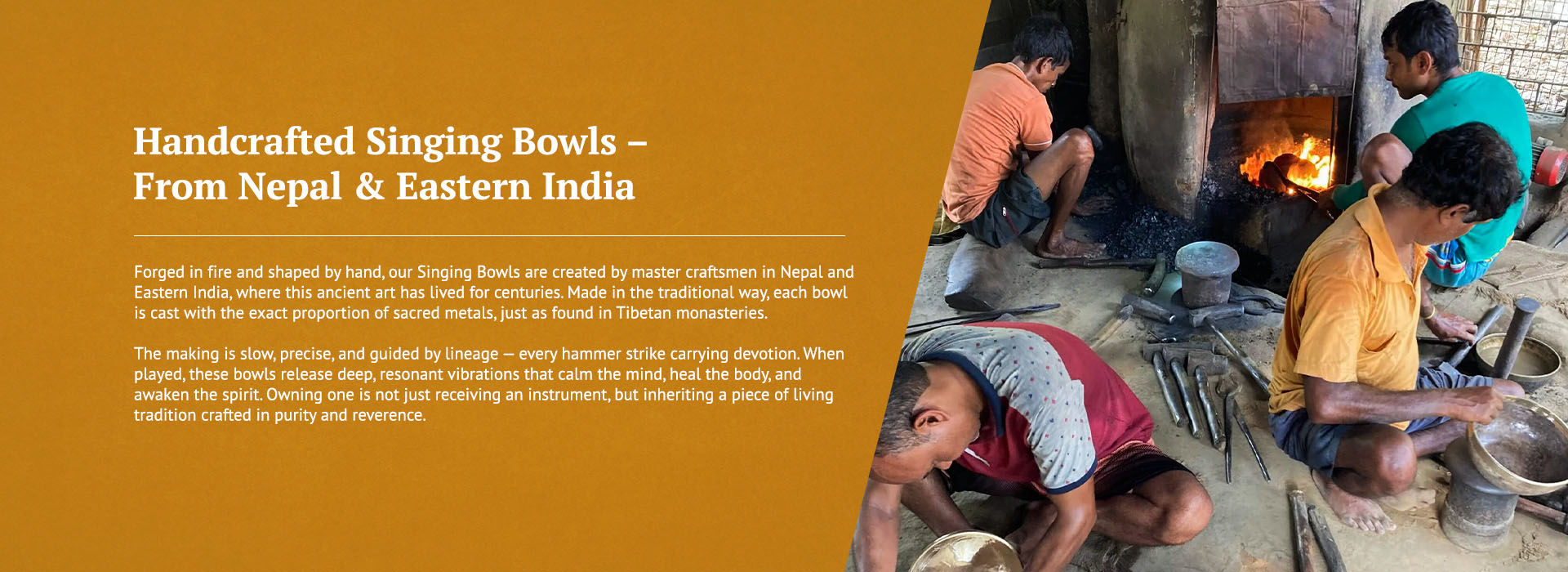 Every item is handcrafted and quality-tested—from frequency tuning in bowls to strength testing in yoga gear and purity checks in oils. We work directly with artisans to preserve authenticity and tradition.